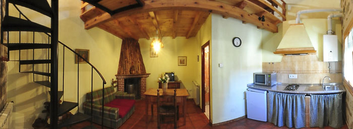Rincón de la Avena: Para 2 personas, 1 habitación a balconada accediendo por una escalera de caracol desde un salón con chimenea, patio con barbacoa y mesas y piscina en verano.